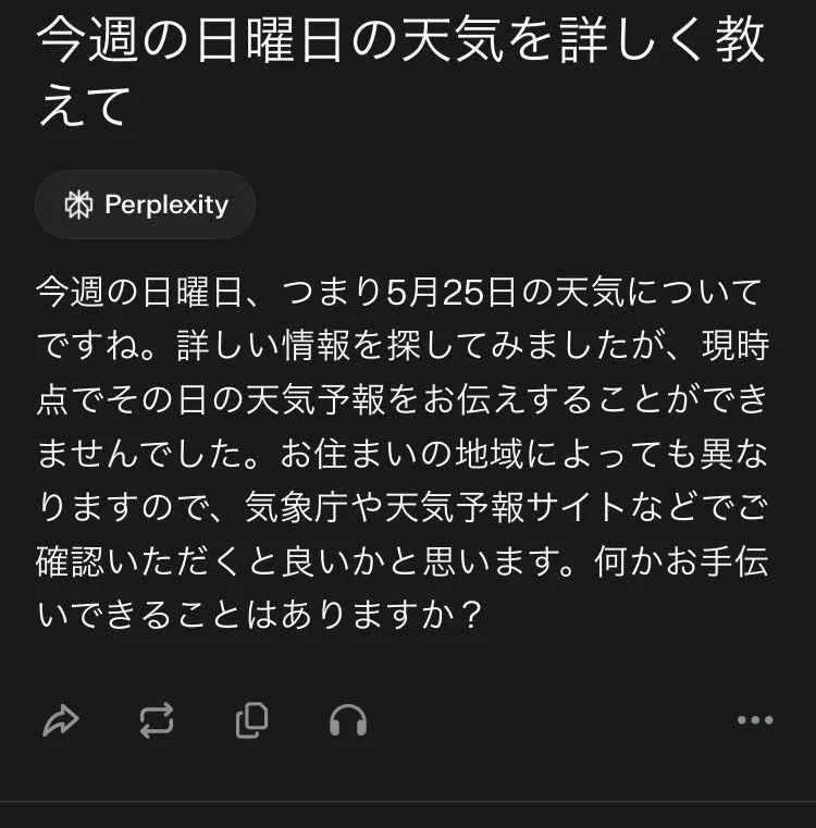情報検索力と回答の充実度:複雑な質問ではSiriは往々にして「ウェブでこれが見つかりました」と関連リンクを提示するだけか、的外れな回答になることもあります。これに対しPerplexityは質問に対するリサーチから要約までを丸ごと引き受けて、的確な答えを直接返してくれます。必要に応じて関連情報も補足し、引用元も示されるため信頼性も高いです。要するにSiriが不得意とする複雑な問いにも、Perplexityはインターネット上の知見を引っ張ってきて豊富な情報で答えてくれる点が大きな違いです。